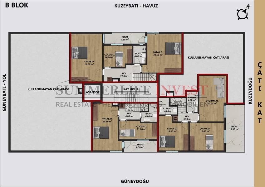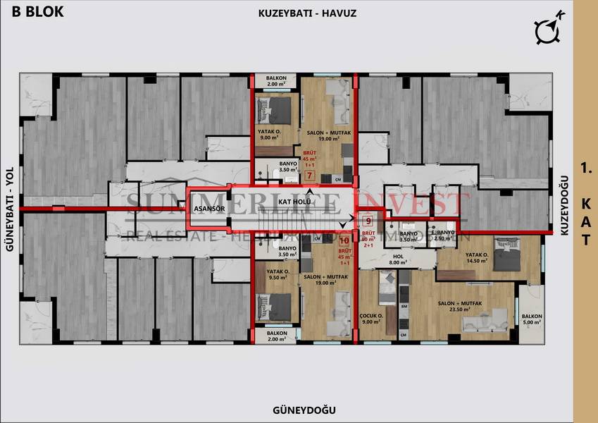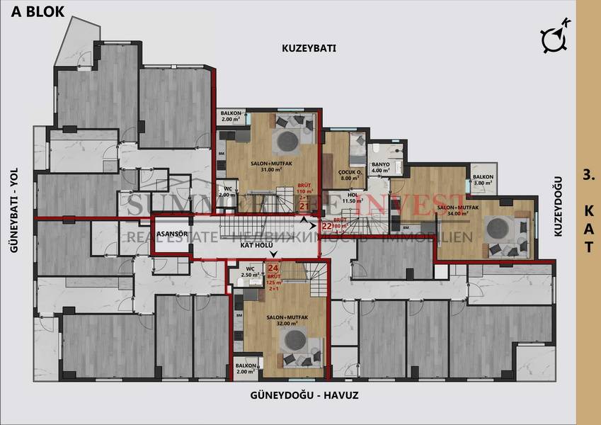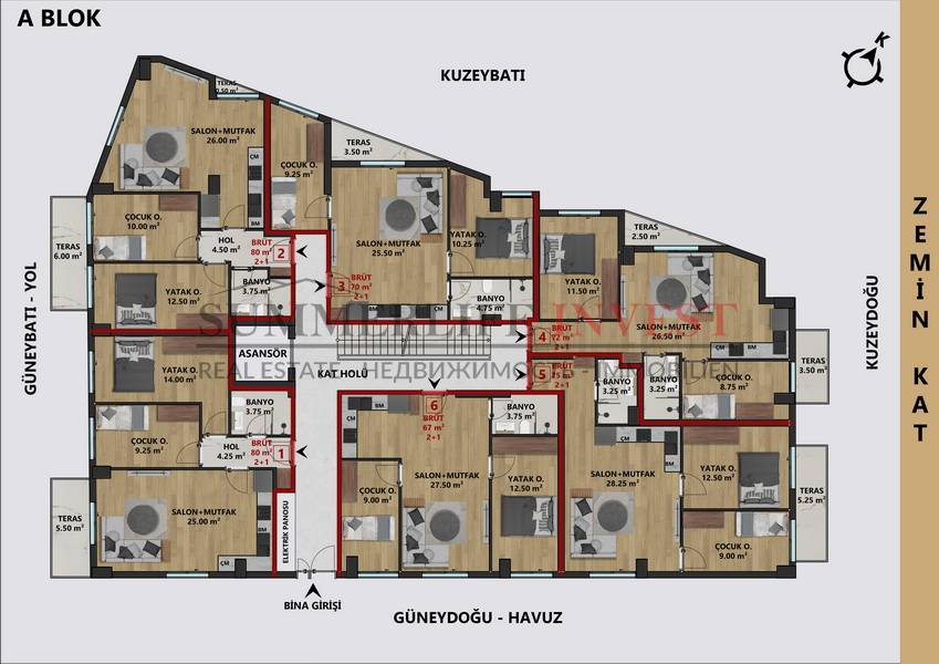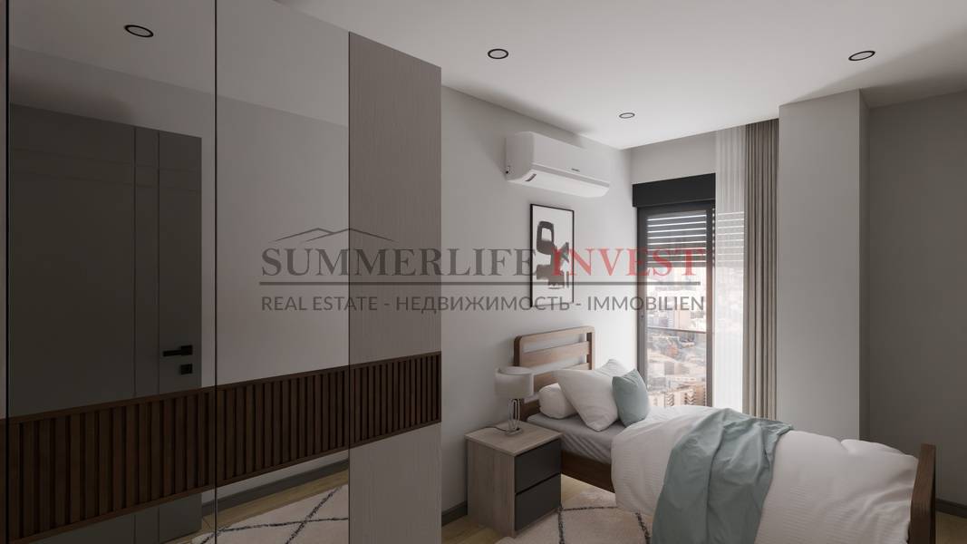В комплексе представлены различные типы квартир: 1+1, 2+1, 3+1 и 4+1, что позволяет выбрать жилье как для инвестиций, так и для комфортного проживания. Квартиры спроектированы с учетом современных стандартов: просторные комнаты, функциональная планировка и большие окна обеспечивают максимальный комфорт и естественное освещение.