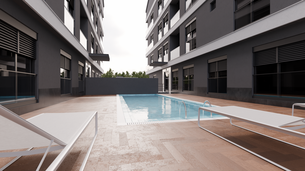 На территории комплекса предусмотрены открытый бассейн, подземная парковка и система безопасности, что делает проживание удобным и безопасным. Благоустроенная территория и современные общие зоны создают приятную атмосферу для жизни.